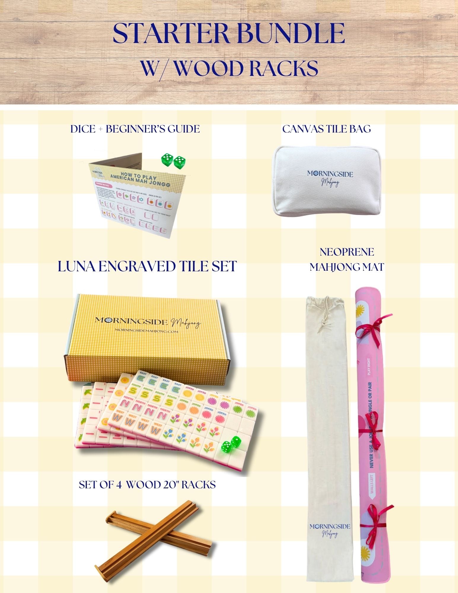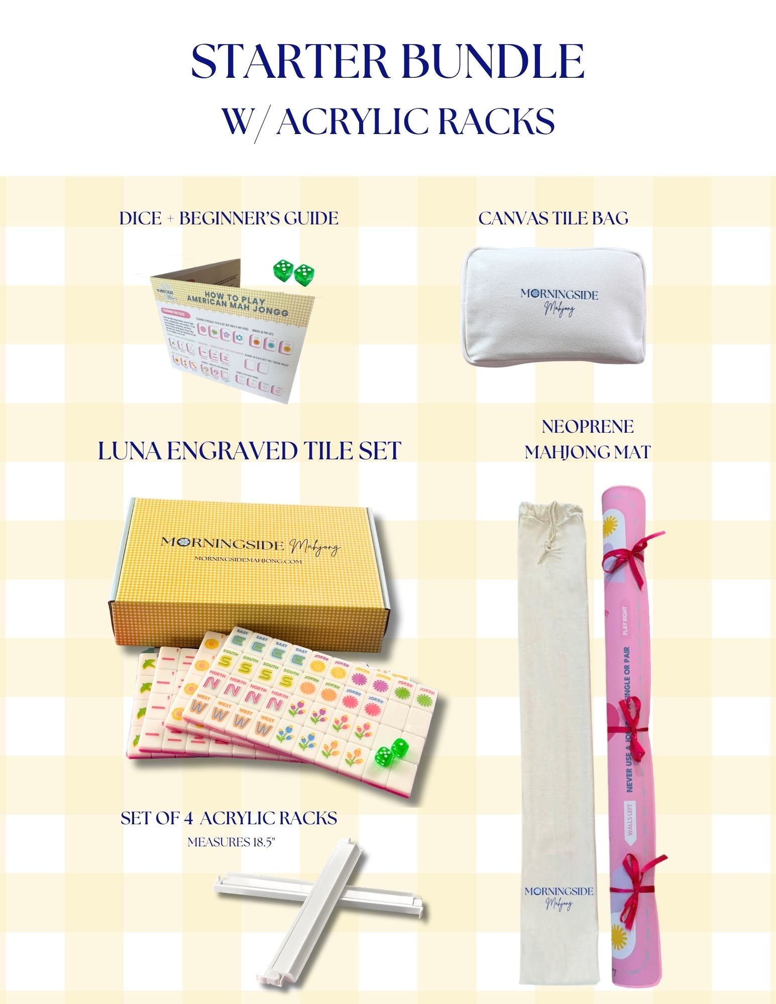 Included in each of the Magnolia Mahjong sets are two dice, a cotton canvas tile travel bag, and our instructional learning guide.